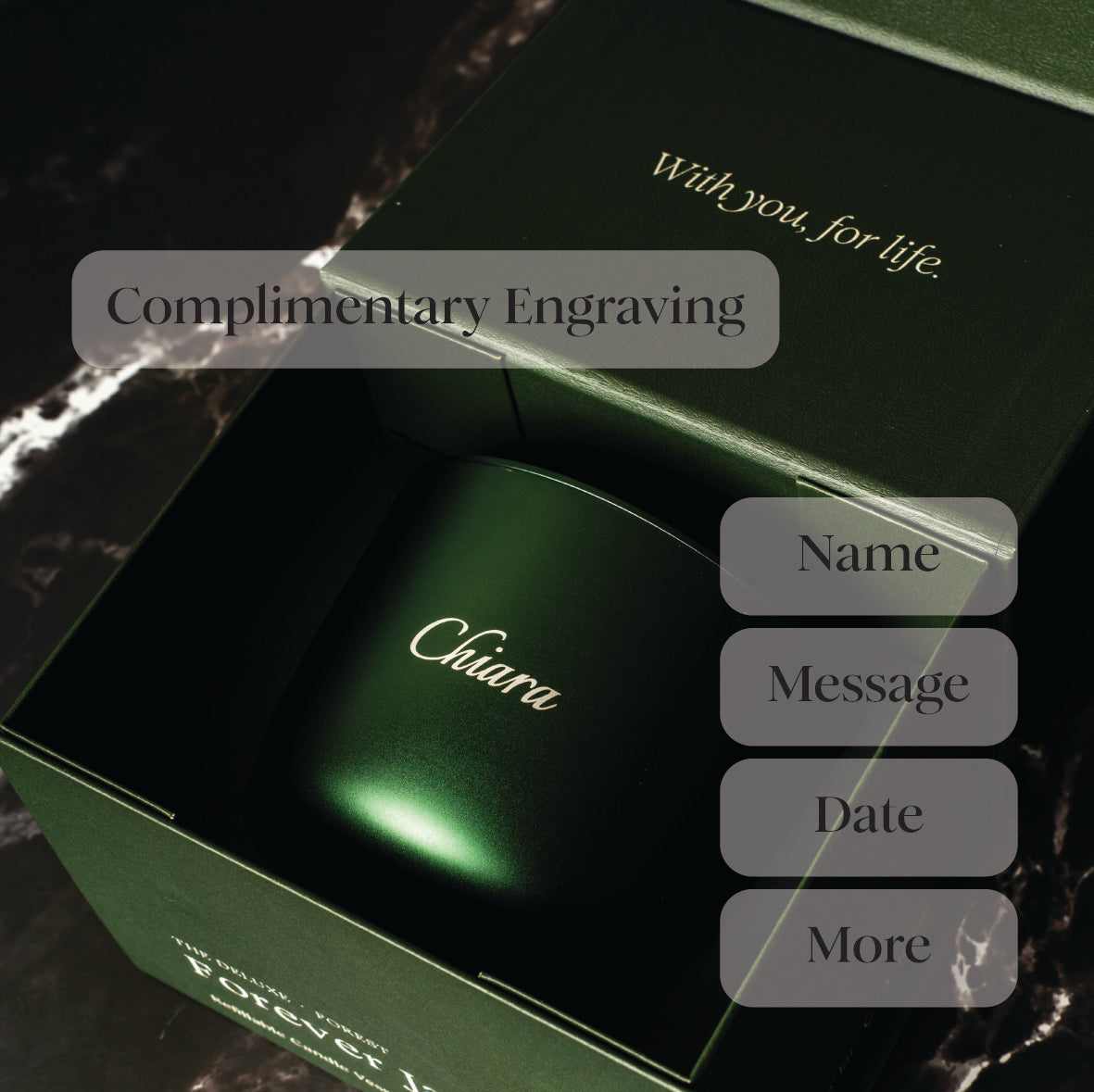 Every Forever Jar comes with complimentary engraving. A name, a date, a word that means something — at no extra cost.